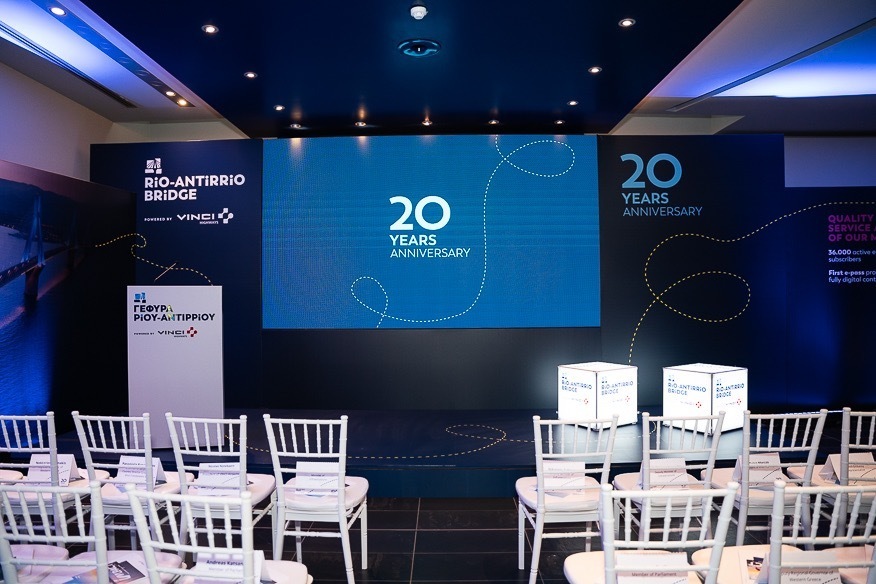Οργάνωση της κεντρικής εκδήλωσης για τον εορτασμό της επετείου των 20 χρόνων λειτουργίας της Γέφυρας Ρίου – Αντιρρίου παρουσία του προέδρου της Vinci κ. Nicolas Notebaert, του Υπουργού Υποδομών Χρήστου Σταϊκούρα, των υφυπουργών υποδομών : Χριστίνας Αλεξοπούλου, Νίκου Ταχιάου, αρχών, επίσημων προσκεκλημένων κ.α.